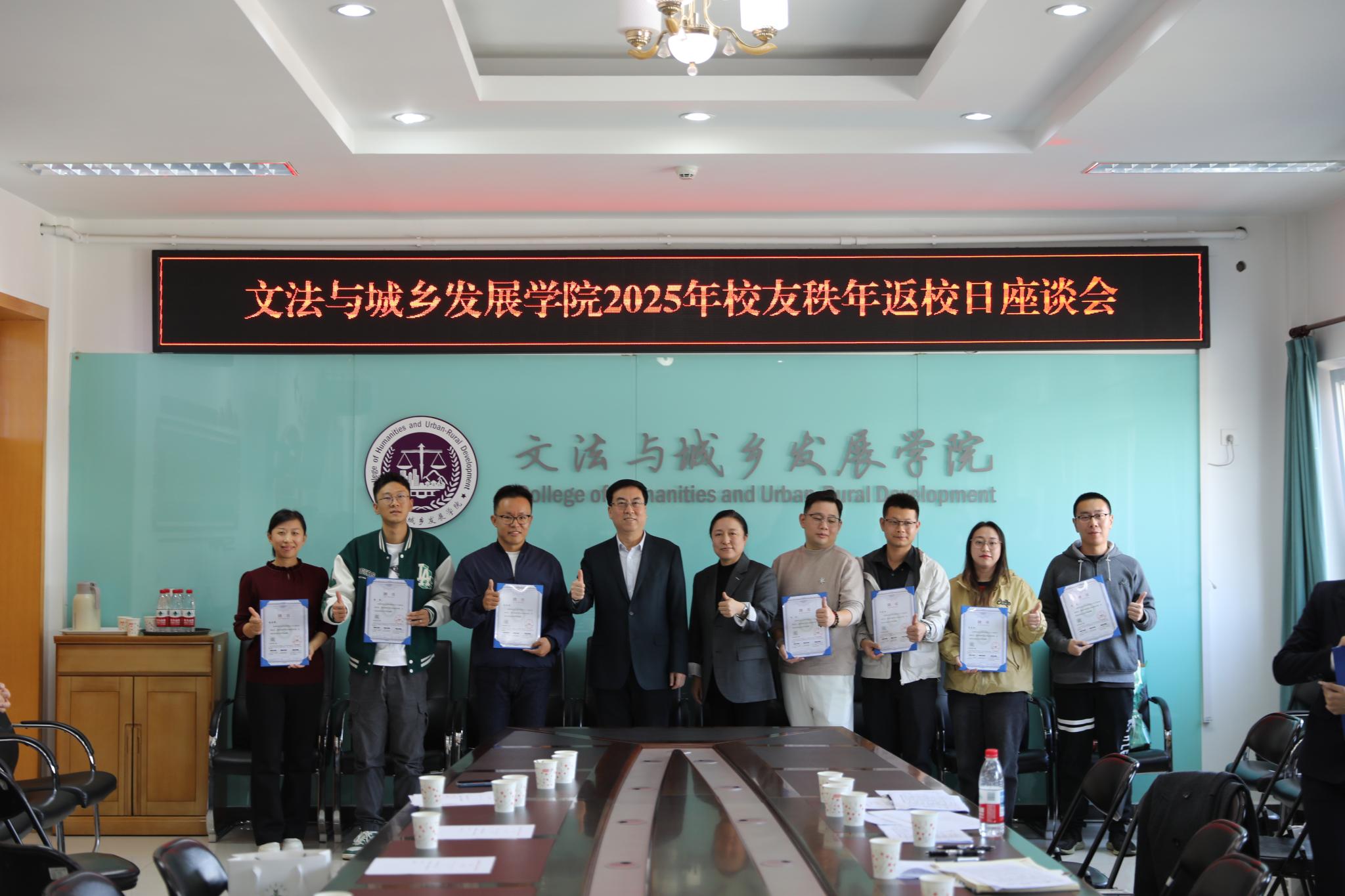 2025年10月18日,文法与城乡发展学院2025年校友秩年返校日座谈会在文发楼322顺利举行。文发学院党委书记赵和文、党委副书记、院长韩芳、副院长何美丽、学生工作负责人周旭平、办公室主任、各系主任、班主任代表、专业教师代表、返校校友出席本次座谈会,文发学院党委副书记、院长韩芳主持会议。