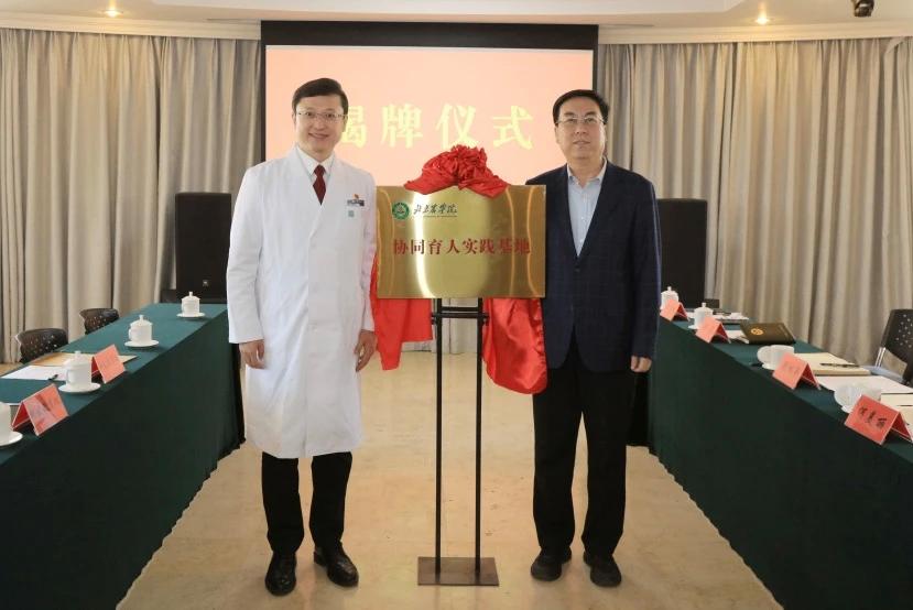 吴家锋院长对合作前景表示高度认可,明确表态医院将全力为北农师生提供优质实践平台,支持双方在医务社工人才培养、服务模式研究等领域建立深度合作关系。在全体参会人员的见证下,韩芳与吴家锋代表双方正式签署《协同育人实践基地合作协议》,赵和文与吴家锋共同为“协同育人实践基地”揭牌。