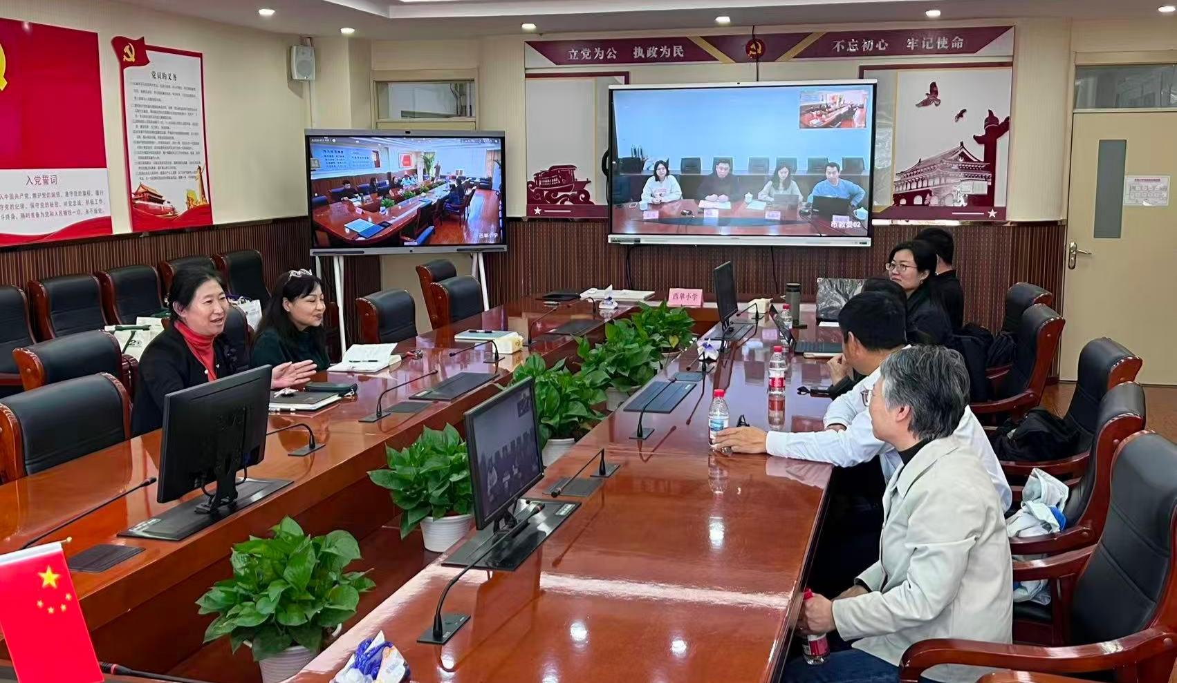 西单小学党支部书记王宏、校长孙明杰对学院一行的莅临表示热烈欢迎,并就西单小学的发展沿革、办学规模、班级设置、生源结构、办学特色及师生基本情况等作了系统介绍,同时深入分析了该校在家校社协同育人机制建设、校本工作坊运行及融合教育推进等方面取得的成效与面临的挑战。